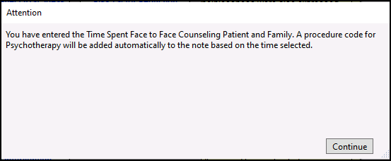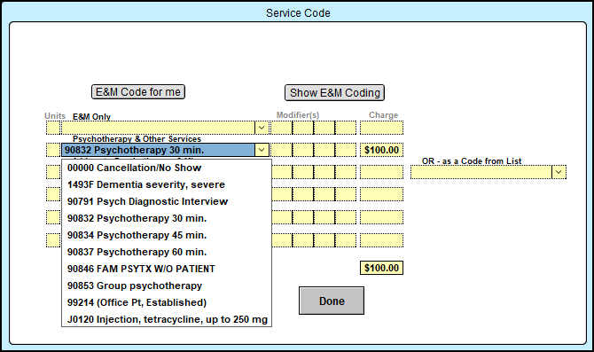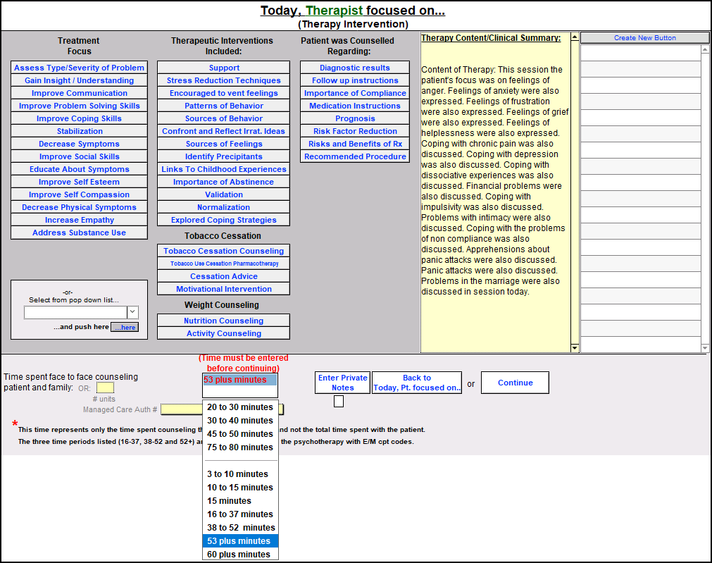 Then the next area would be the therapy interventions. The Psychotherapy Code would depend on the following time spent chosen:
