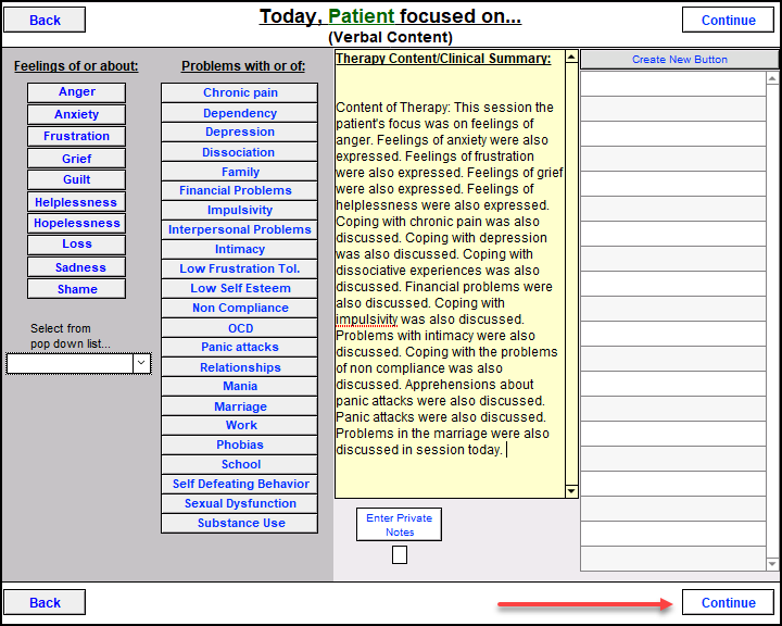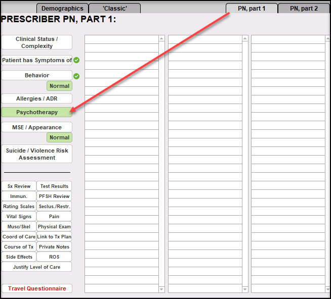 To get the add on code of 99803 you must go into the Psychotherapy code and you then would be taken to a screen to document verbal content.