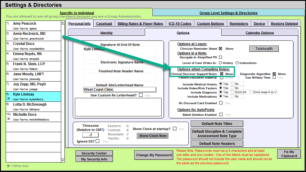 3. Settings/Directories, Options Tab: individual users can choose to see alerts at the chart level.
