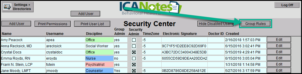 1. Click the button at the bottom of the Settings & Directories screen. In the Security Center, select