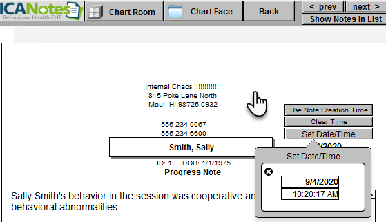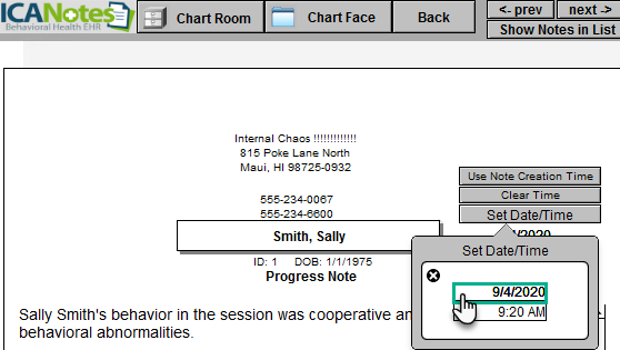 This will open a window to allow you to adjust the Date and Time of your note. Click on the field you wish to update.