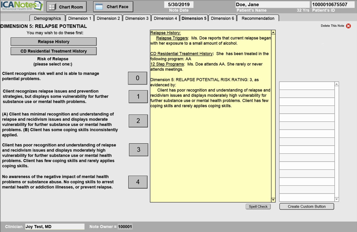 1. From the patient's Chart Face, choose the Chem Dependency (6 ASAM Dimensions) button.