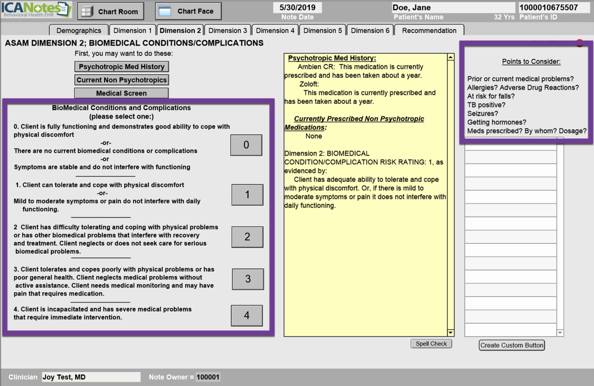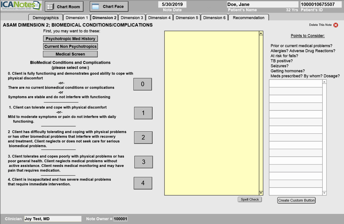 3. The Dimension 2 tab is for ASAM Dimension 2: Biomedical Conditions/Complications window.