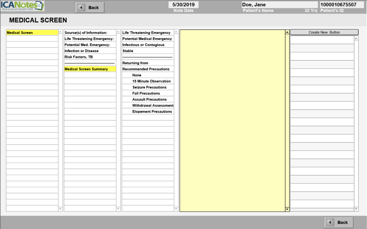 Buttons available on the fourth tab: (Only use the buttons that apply to your patient.)