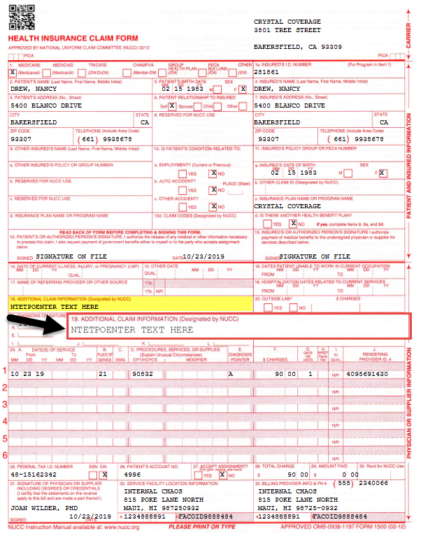 And in box 19 of the CMS 1500 for paper-submitted claims.