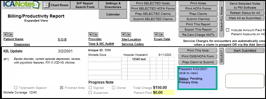 The ability to re-submit claims is available within the Billing/Productivity Report. Use the Billing/Productivity report to locate any claims that need to be updated, make the needed changes, then use the workflow below to submit the updated claims.