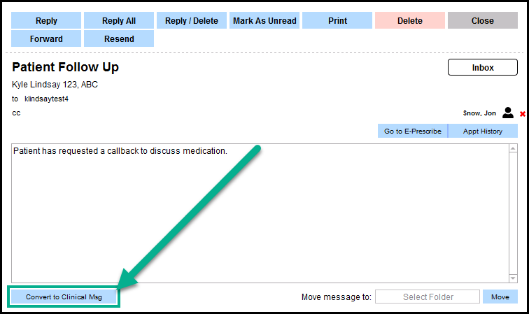 4. You will be taken to the Clinical Message. Once you're finished, click the button.