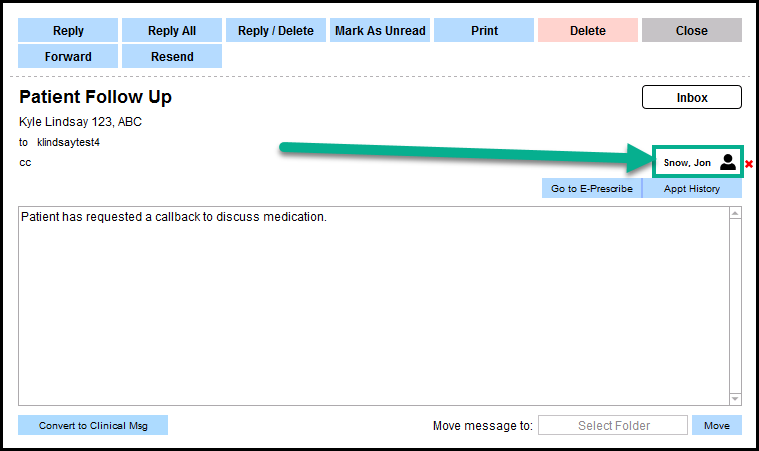 2. After opening a message, ensure it is linked to a patient in the top-right. Click the icon if you need to link a patient.