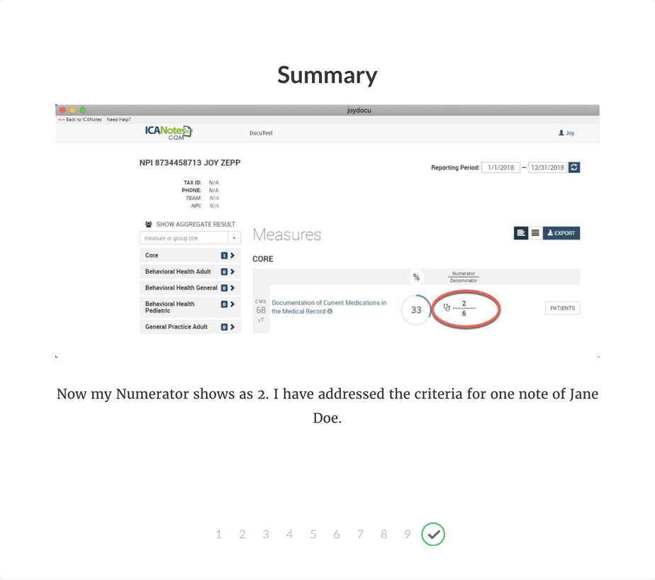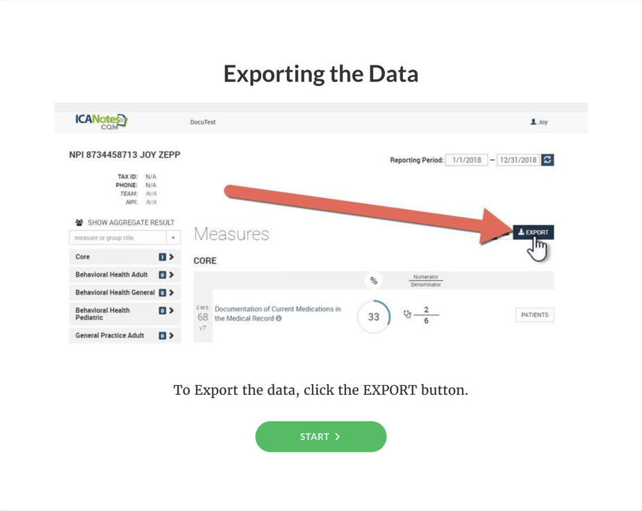 These are the 10 measures on which ICANotes can provide calculations. This course will cover those rules, how they are tracked within ICANotes, reporting, and exporting the report.