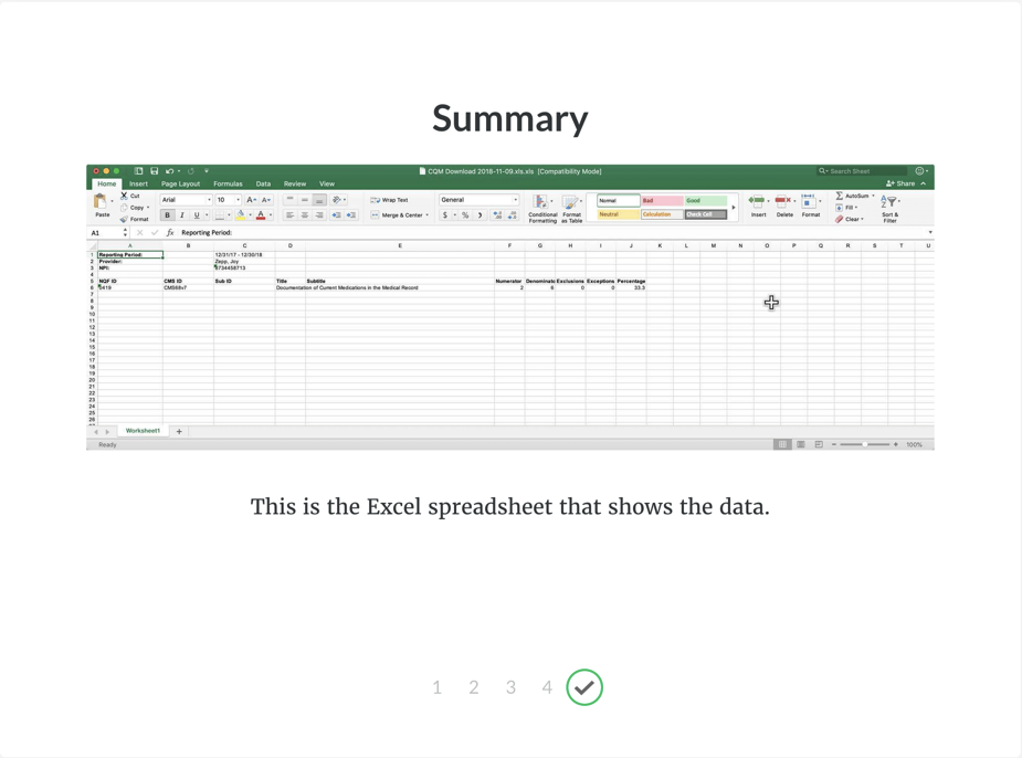 This step will show you how to use the information on the report. We will explore CMS 68 v7, Documentation of Current Medications in the Medical Record.
