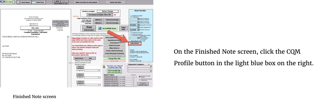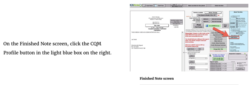 On the right from the Finished Note screen, click on the CQM Profile button to see the CQM Profile Entry.