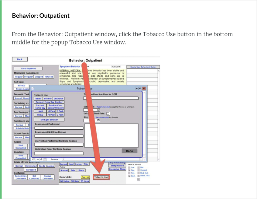 Locations of the Tobacco Use window: