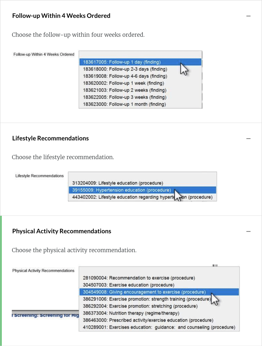 There are many choices in Preventive Care and Screening: Screening for High Blood Pressure and Follow-Up Documented. Click the More link to expand the choices.