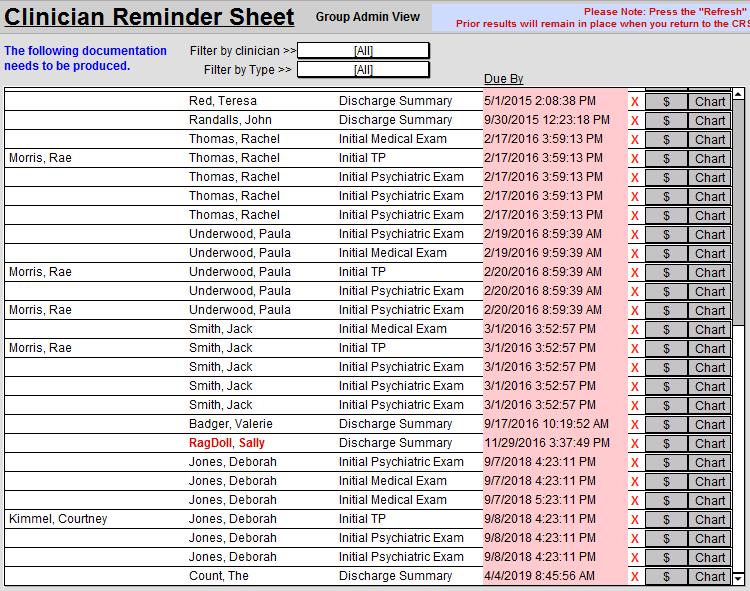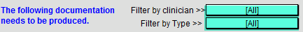 Use the Filter by Clinician and Filter by Type dropdowns to fine tune your display results. Once you apply a filter your results will automatically refresh to show you just the types specified.