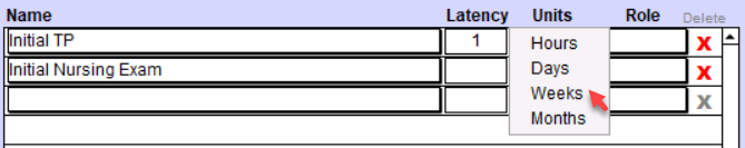 With your cursor, click into the Latency field and type the number that will correspond to Units in the next field. For example, if the rule is to be described as "within 1 week" you would type "1" into the Latency field.