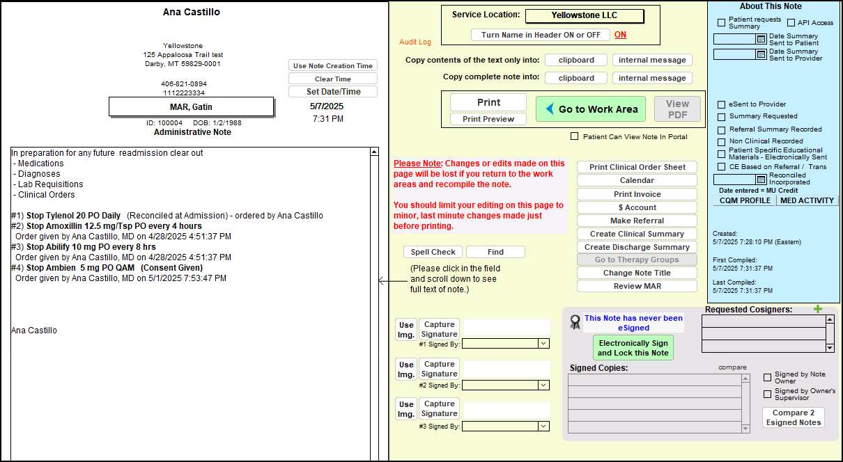 The Administrative Note allow you to clear out a Chart Face so that it is all set for future admissions (MAR Status should be enabled for the patient to generate this type of Note)