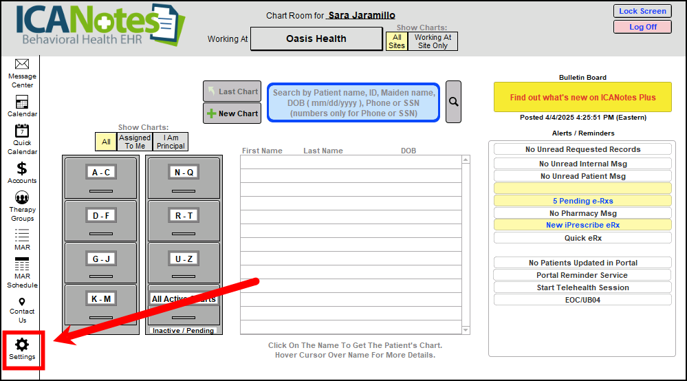 For customers who utilize Institutional billing/UB04, click in the Institutional tab to set options. (If your group is not enabled for Institutional billing, please contact Support).