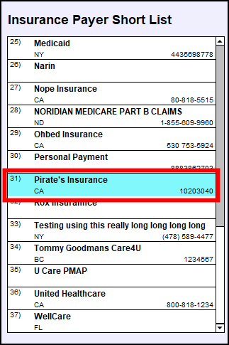 This pushes the Payer through to your Insurance Payer Short List.