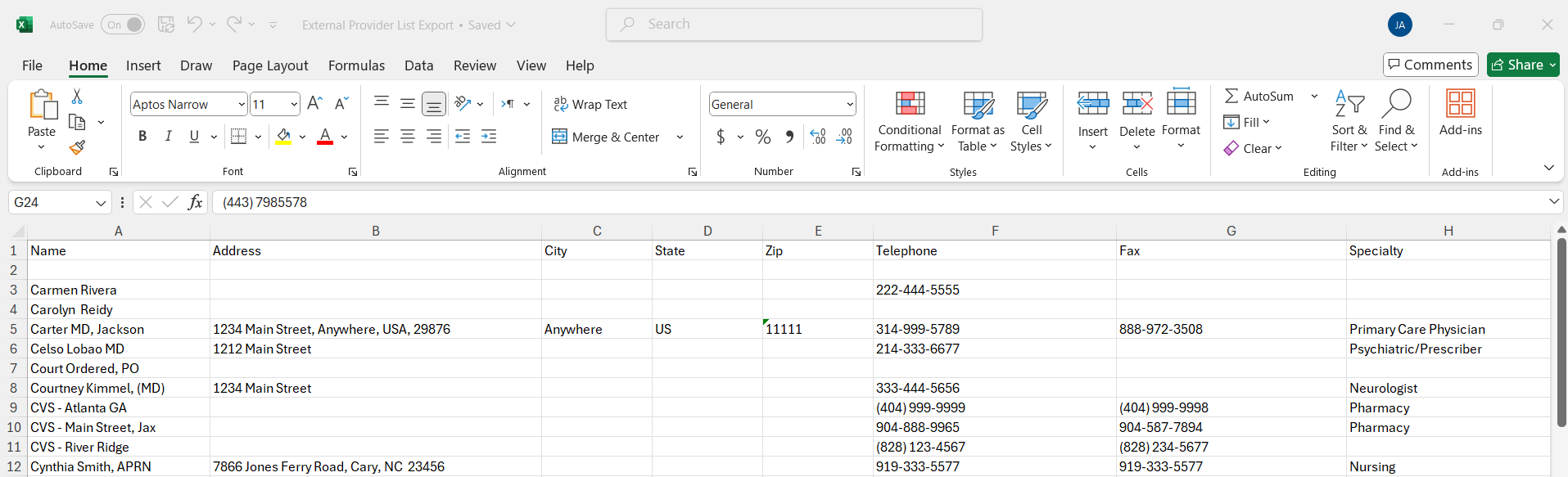 This list can include external or partnered providers or groups, hospitals, pharmacies, or imaging and lab contacts.