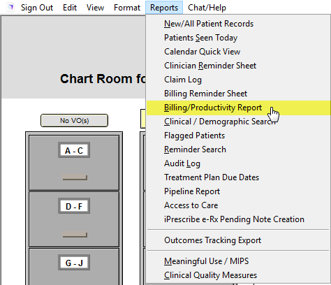 From the Reports menu, click to go to the Billing/Productivity Report