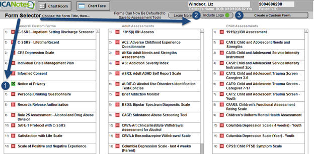 Once your logo has been added by Support, you’ll have the opportunity to apply it to Custom Forms/Assessments. From the patient’s Chart Face click the