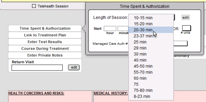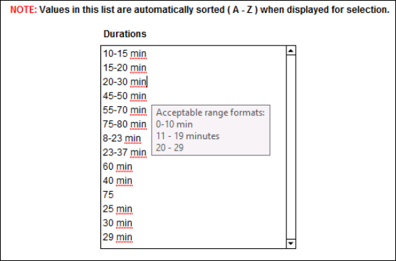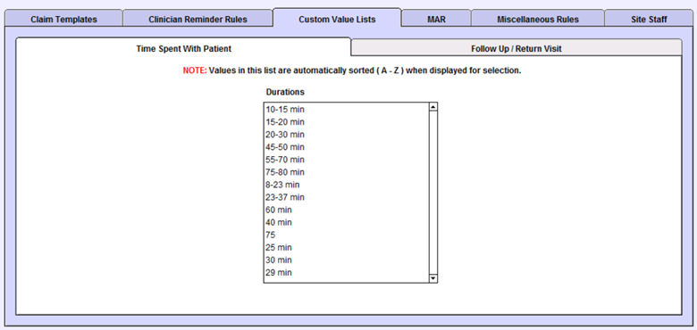 To modify the list of durations for Time Spent with Patient, simply place your cursor into the text field and begin typing.