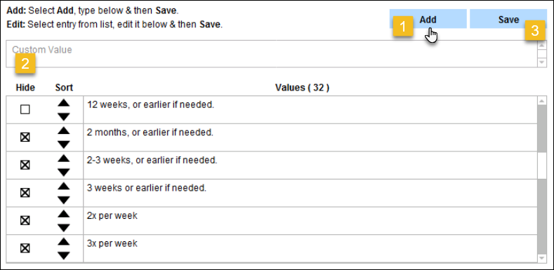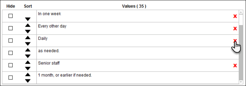 arrow icons to move a value up or down the list. To hide a value from the list entirely, click the