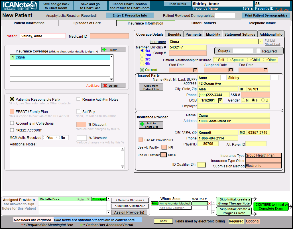 This is where you can add insurance information. For additional information about entering Insurance Information see the related Knowledge Base Article.