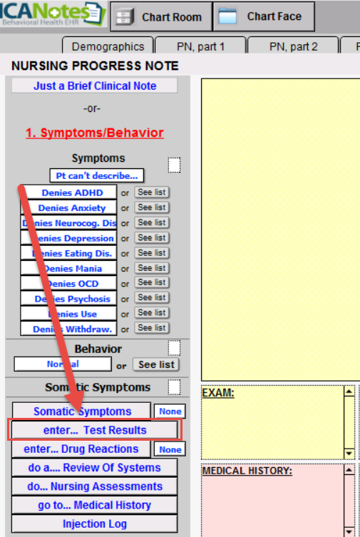 3. Test Results will show. You can mark any abnormal results to show highlighted in yellow by clicking the flag in the row.