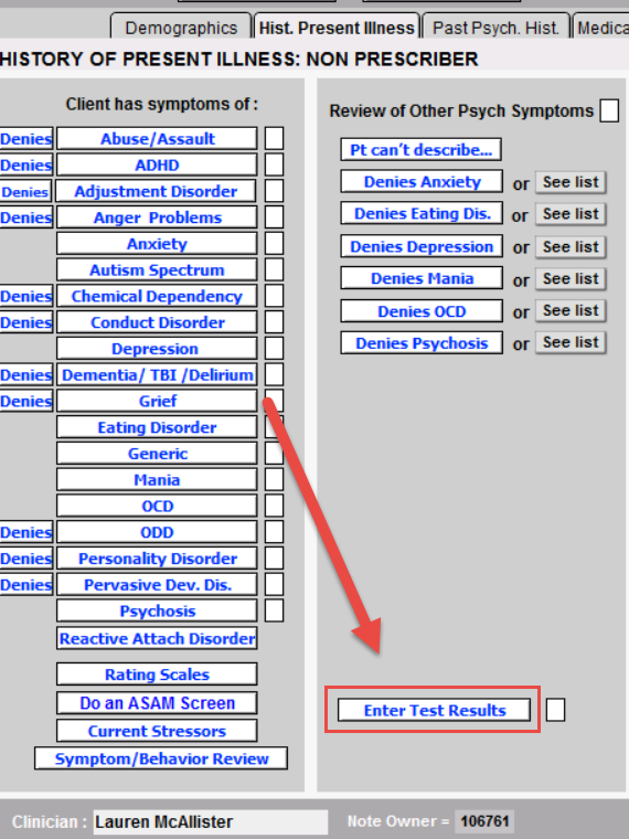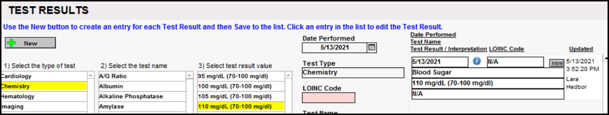 - Select the test result value (if shown) or you can type in the results in the Test Result field.