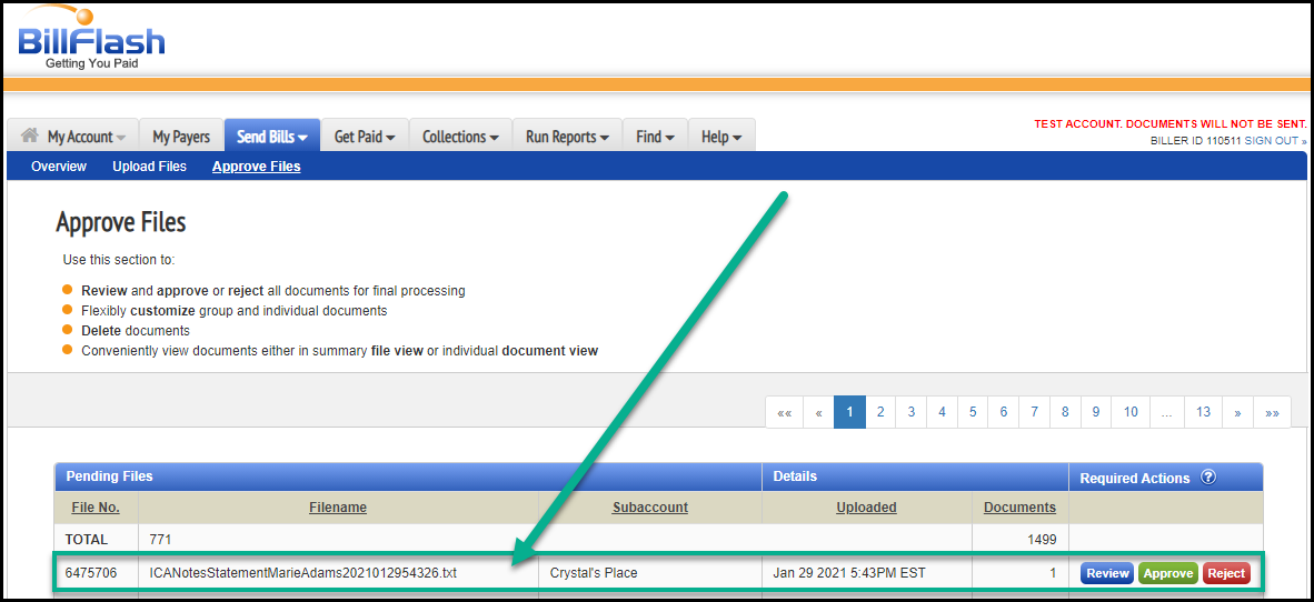 7. When you are ready to approve the pending statement(s) for final processing, click the button.
