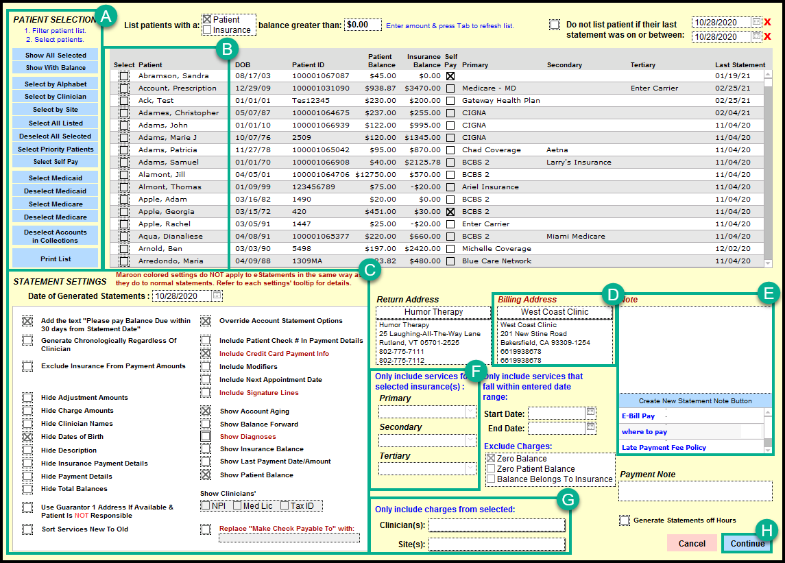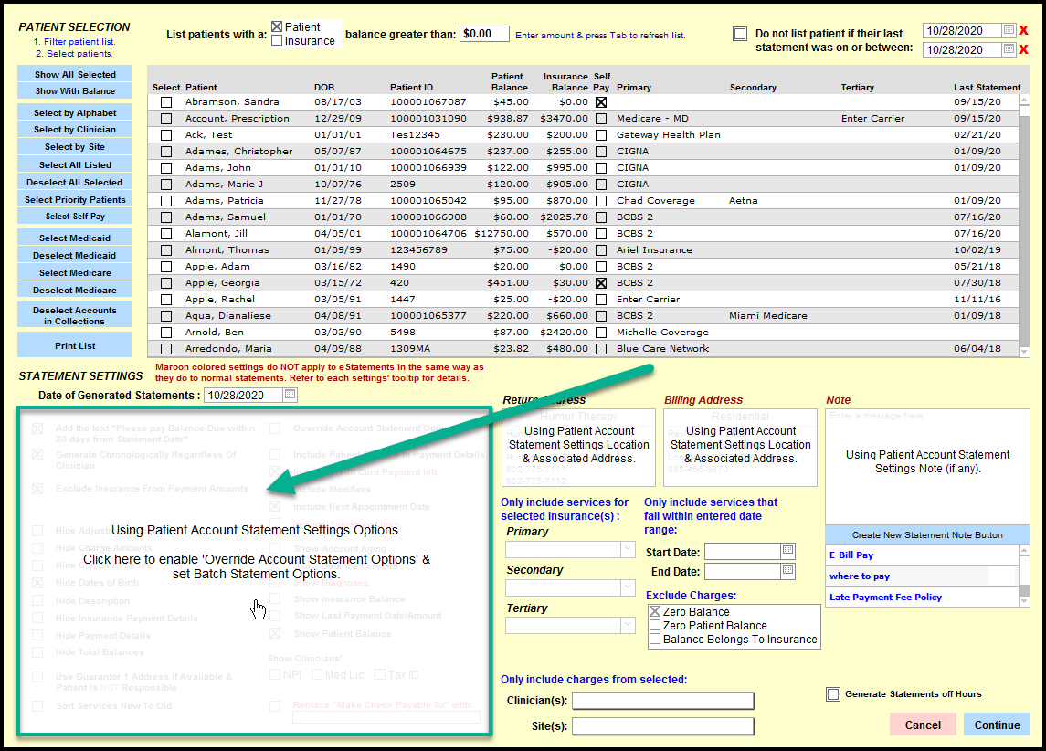 - Fill out the criteria of the patients you want included in the statement.