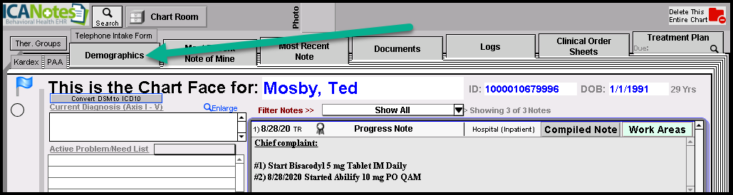 1. Click on the Demographics tab in the Chart Face.
