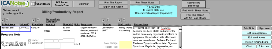 3. The report is run showing me the note she completed.