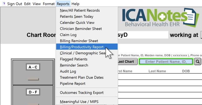 1. Go to the Billing/Productivity Report from the Reports menu.