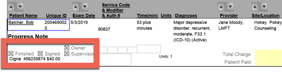 I get basic information from the first few columns including a check if the note is finished and signed by the owner of the note and/or supervisor.