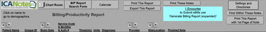 - go back to the Billing/Productivity Report Search Form