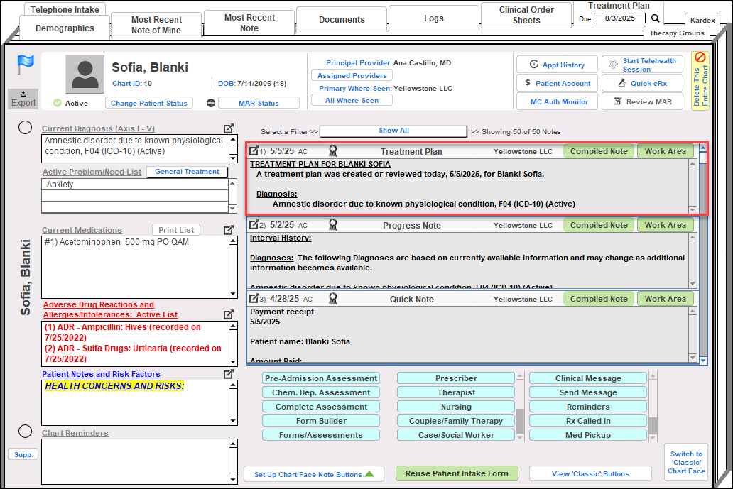 26. Back on the Chart Face, you'll find the compiled treatment plan in the list of notes.