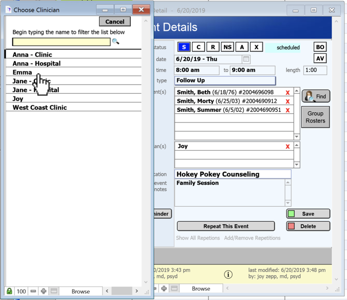 8. Choose the clinician from Choose Clinician window.