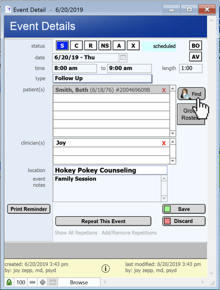 9. The Clinician will be added to the appointment.