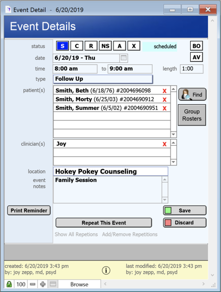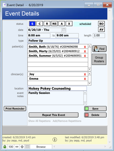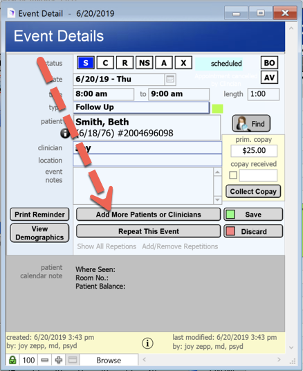 12. When the Status is changed on the appointment, it will be reflected for all Clinicians. I can go into the appointment to add or remove patients (or clinicians) from the appointment.