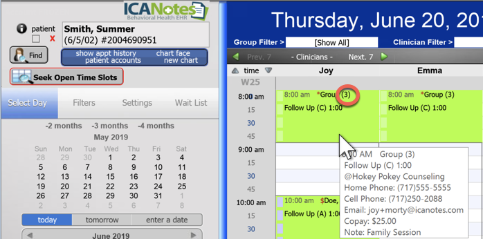 - I can see how many patients are scheduled for the appointment by the number in parentheses.
