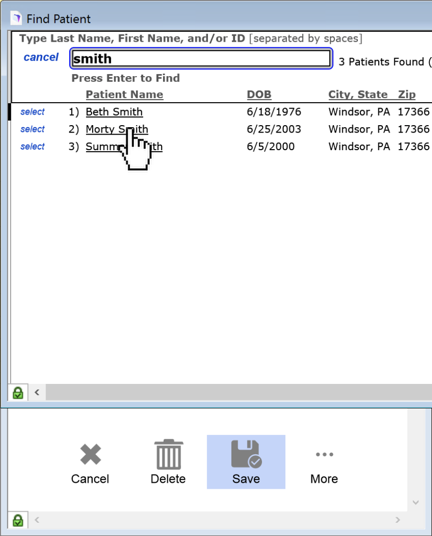 5. The new patient will show. Continue with steps 3 and 4 until all patients are selected.