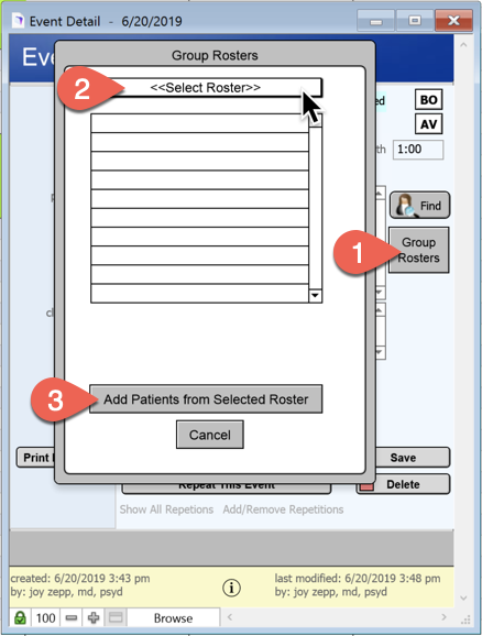 button to add patients if you have set up Group Rosters.