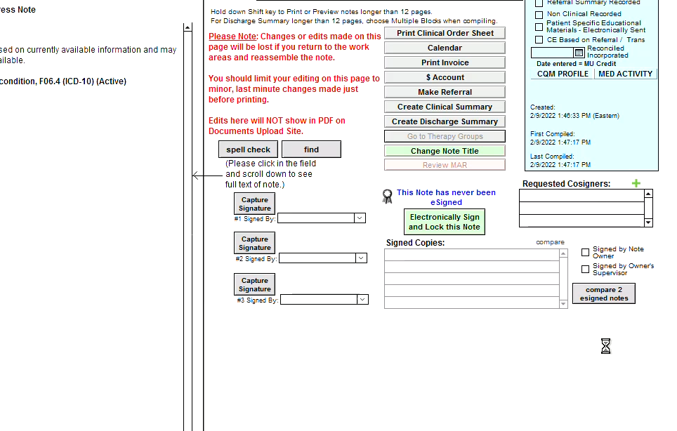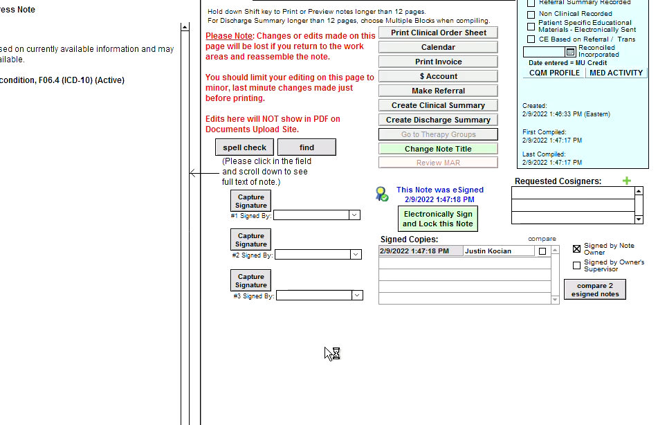 We have added a new group rule, "Automatically eSign All Compiled/Modified Notes." When enabled, any change that would normally trigger the generation of a PDF will additionally electronically sign the note. Examples are compiling a note or changing the date/site/etc from the finished note screen.
