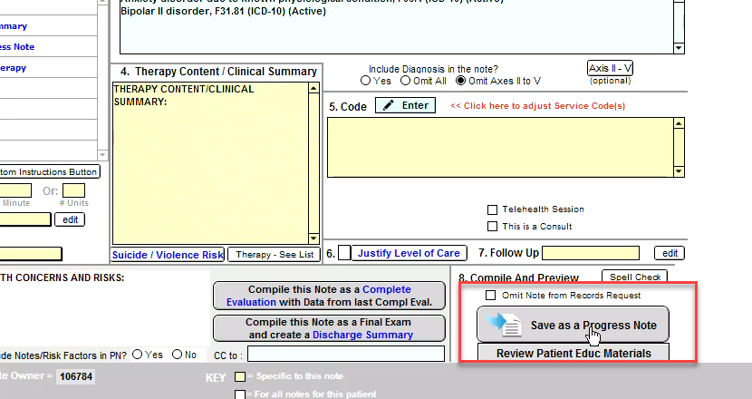 Click Save as a Progress Note: