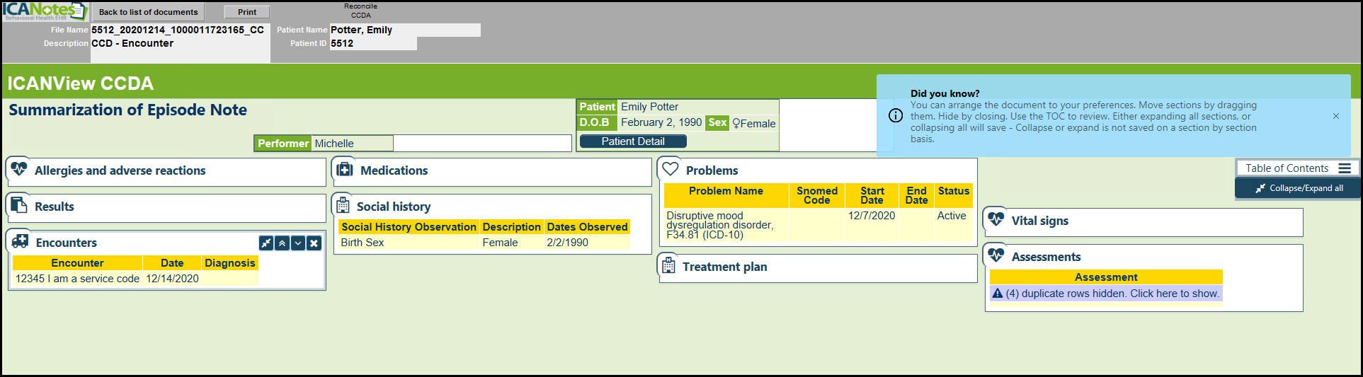 - Changes made to the CCD here will not affect how patents are able to view their CCD on the Patient Portal.