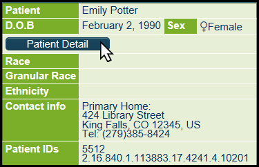 12. Clicking the Patient Detail button will open the patient information area (Shown expanded below).