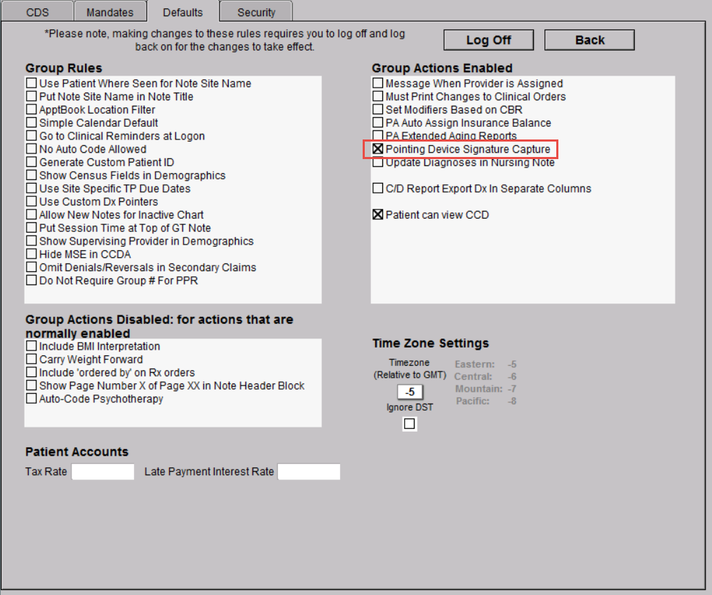 3. Go to the Defaults tab and enable the 'Pointing Device Signature Capture' group rule.