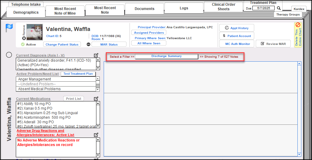 We added a group rule "Restrict Social Worker Note View". When enabled a user with discipline of Social Worker will see a filtered list of notes on the Chart Face including only the following: